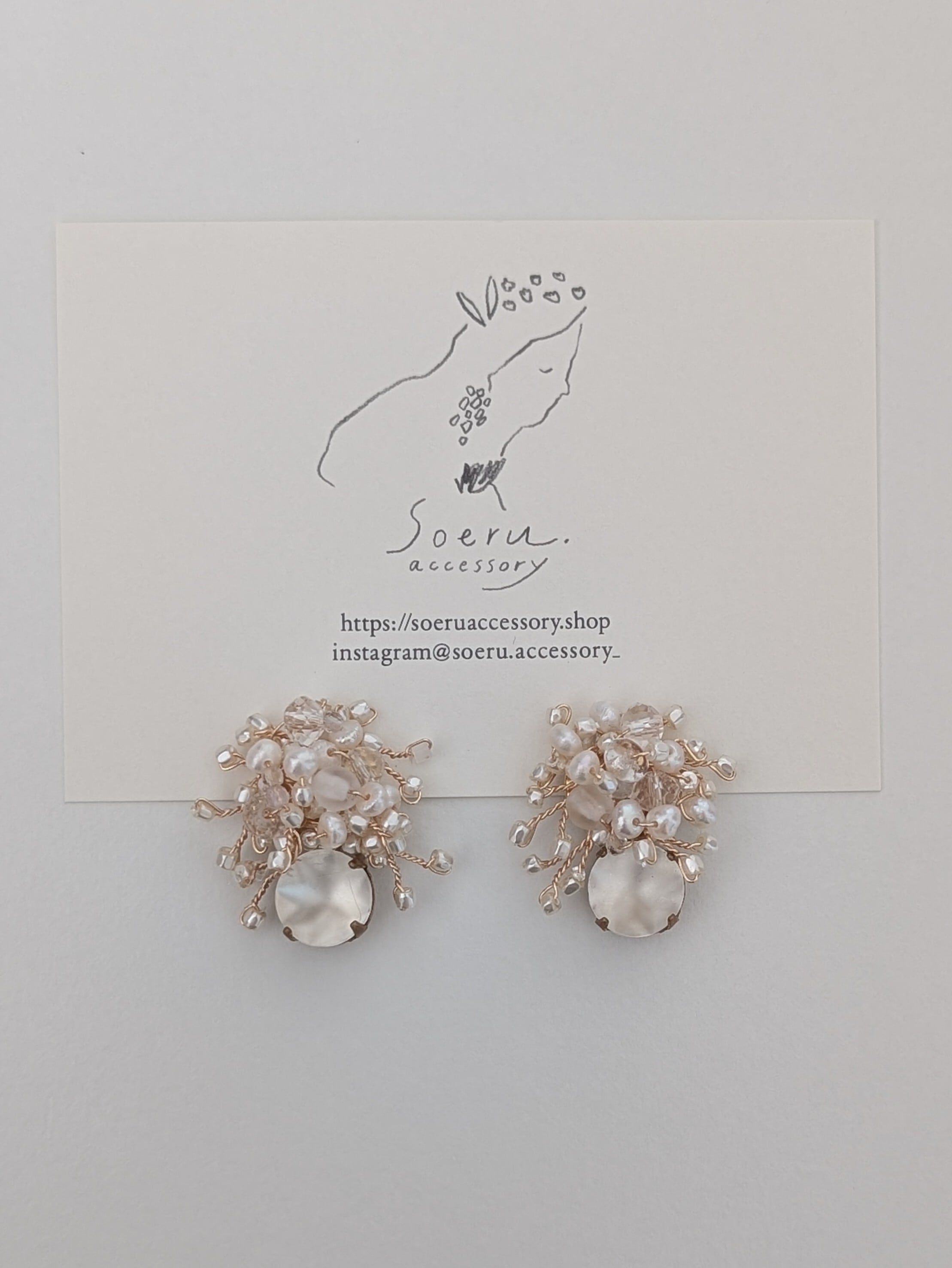 【耳飾りはピアス、イヤリングどちらでもご用意可能です。お手数ですが、ご希望のタイプを備考欄に必ずご記載くださいますようお願いいたします。】