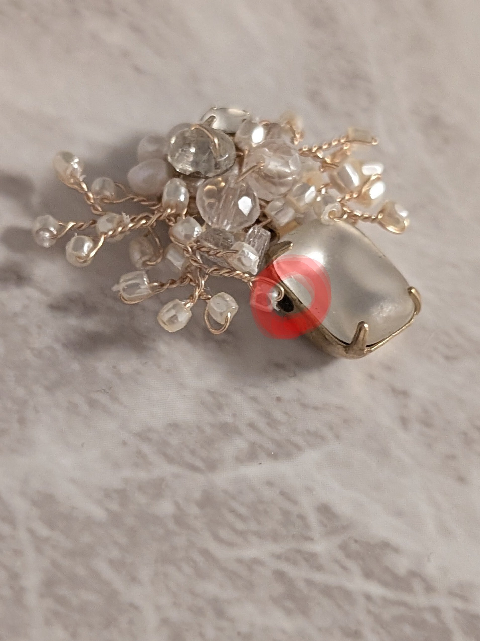 磨りガラスがとても素敵です。パールや水晶と合わせ淡いトーンで仕上げました。